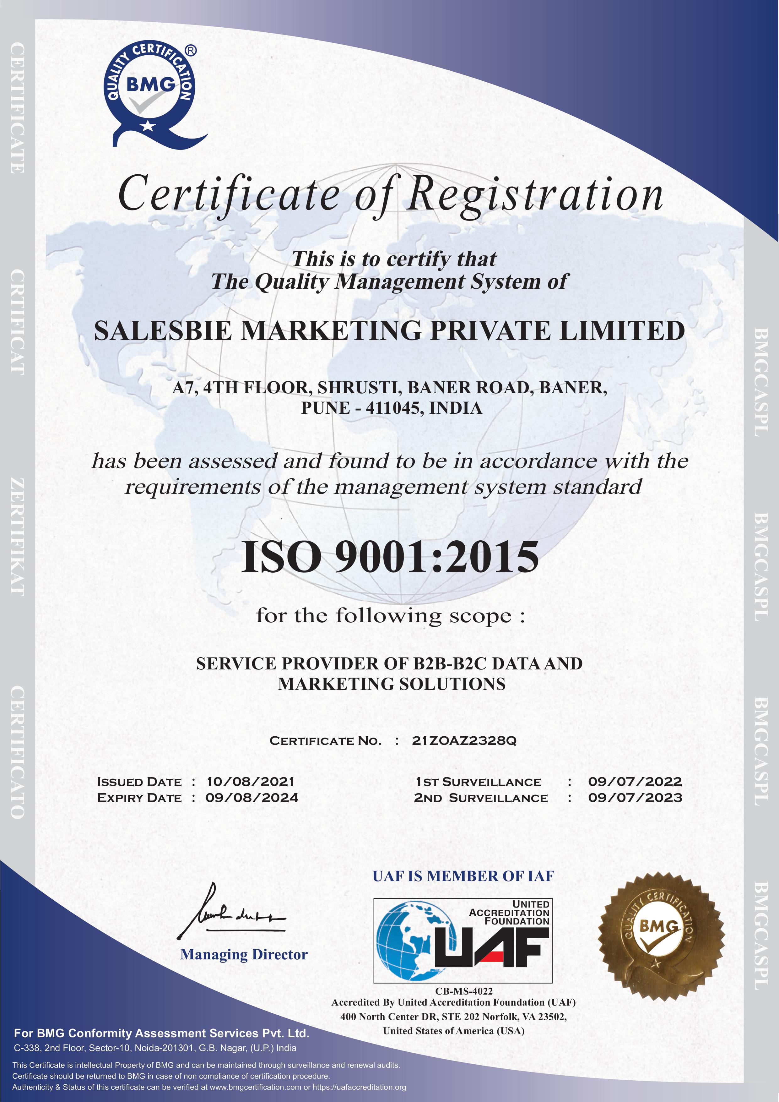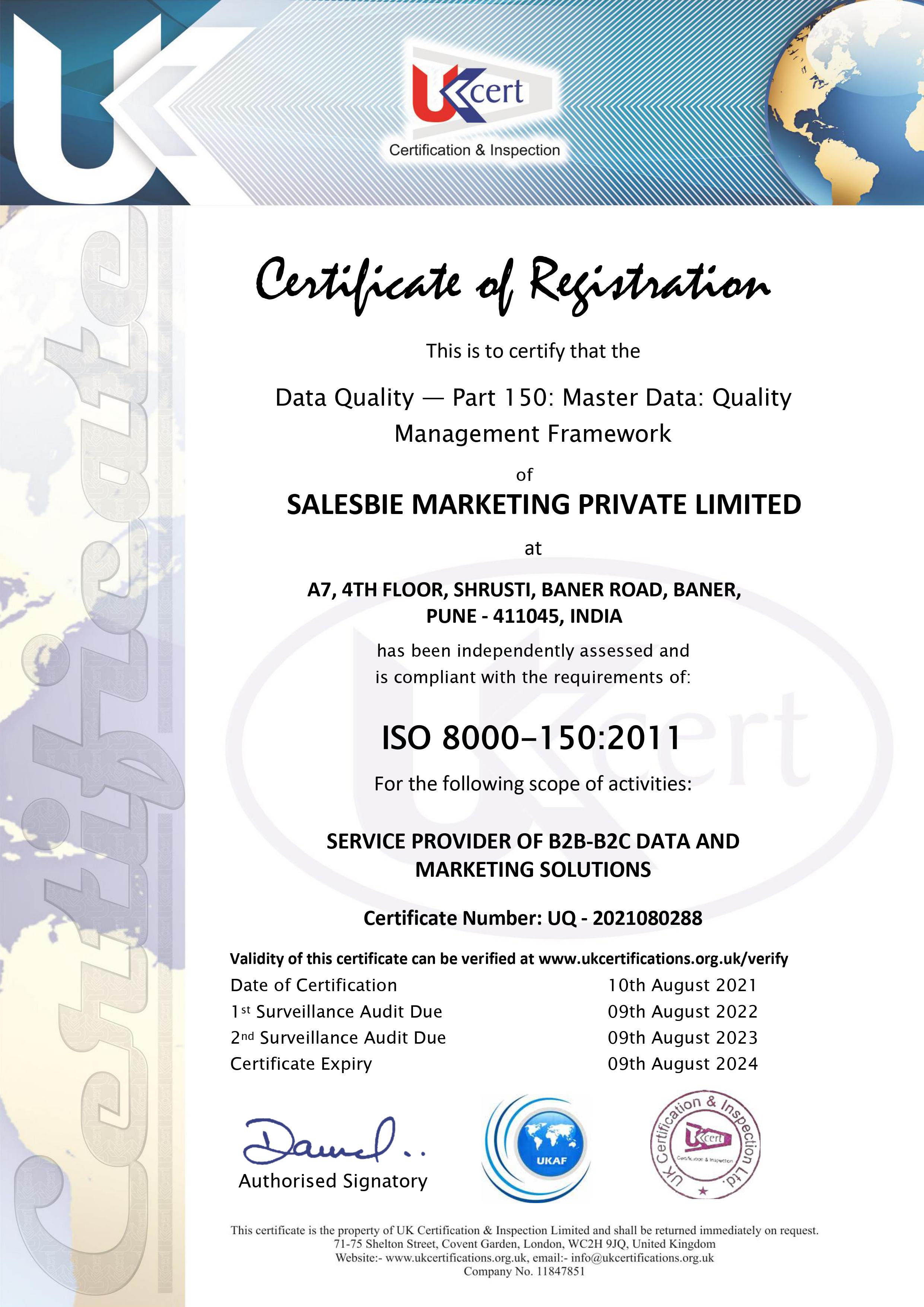 ISO/IEC 27001:2013, ISO 8000 - 150 : 2011 and ISO 9001 : 2015